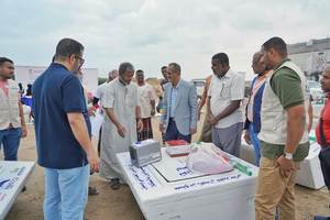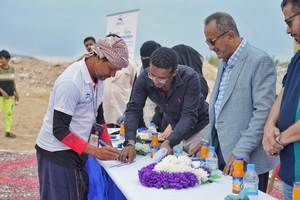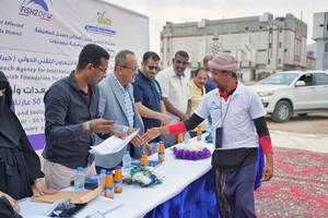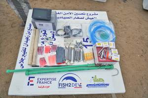 وتم تدشين التوزيع باستلام وتسليم الصيادين الأدوات والمعدات حيث تم توزيع 50 عازلة اسماك و 50 جهاز كاشف اسماك و 50 عدة صيد تقليدي لعدد 50 صيادا من أعضاء الجمعية التعاونية لصيادي مديرية المكلا المستهدفين من المشروع.