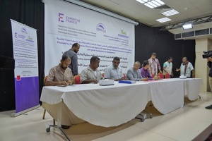 جرى توقيع اتفاقية تفاهم بين الجمعيات السمكية والقطاع الخاص – الشركات والمصانع – ضمن مشروع تحسين الأمن الغذائي وسبل العيش لصغار الصيادين بالمكلا الممول من خبراء فرنسا وتنفيذ مؤسسة صلة للتنمية وضمن نشاط انشاء آلية الحوار والتنسيق بين الأطراف الفاعلة في قطاع مصائد الاسماك