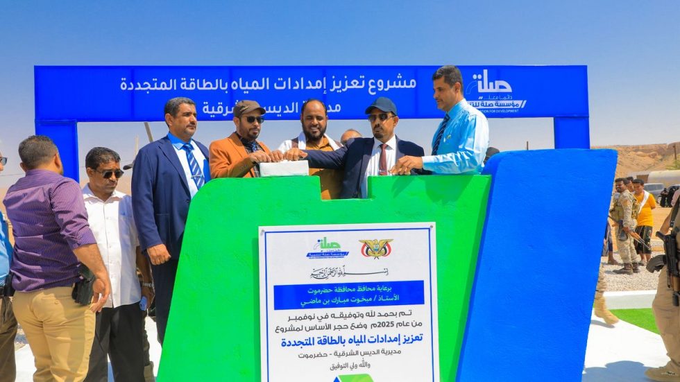 وضع محافظ حضرموت الأستاذ مبخوت مبارك بن ماضي اليوم، حجر الأساس لمشروع تعزيز إمدادات المياه بالطاقة المتجددة بمديرية الديس الشرقية، بتمويل من مؤسسة صلة للتنمية، في إطار الجهود المشتركة لتحسين خدمات المياه واستدامتها في مديريات المحافظة. ويهدف المشروع إلى تطوير منظومة تشغيل المياه باستخدام الطاقة النظيفة بما يسهم في تقليل كلفة التشغيل وضمان استمرارية الإمدادات … تابع قراءة محافظ حضرموت يضع حجر الأساس لمشروع المياه بالطاقة المتجددة بمديرية الديس الشرقية