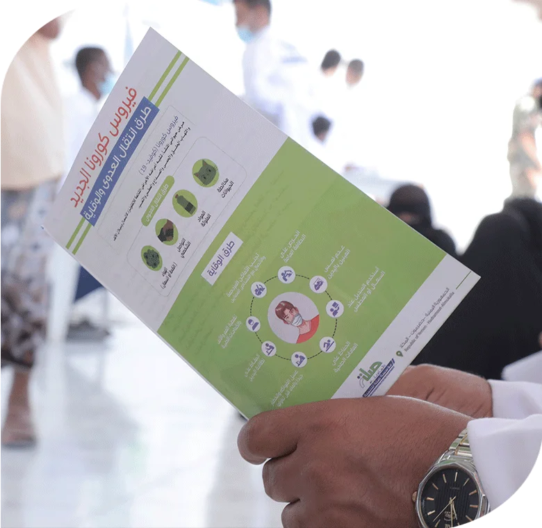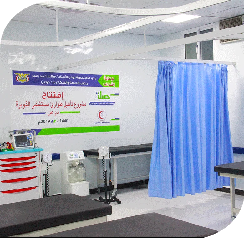 الصحة من المحاور الأساسية التي تقوم عليها عملية التنمية وبناء الانسان، لكن تصاعد النزاع باليمن أوجد احتياجات ضخمة جعلت من النظام الصحي ضعيف جداً وتنامي القطاع الصحي الخاص والتجاري ، مما يعاني الكثير من السكان من مشاكل صحية , أسهمت المؤسسة في تحسين الوضع الصحي لبعض المرافق الصحية وتقديم خدماتها الصحية للمرضى مما اكسبها تحسن ملموس في الخدمات المقدمة والتغلب على بعض الأمراض والأوبة .